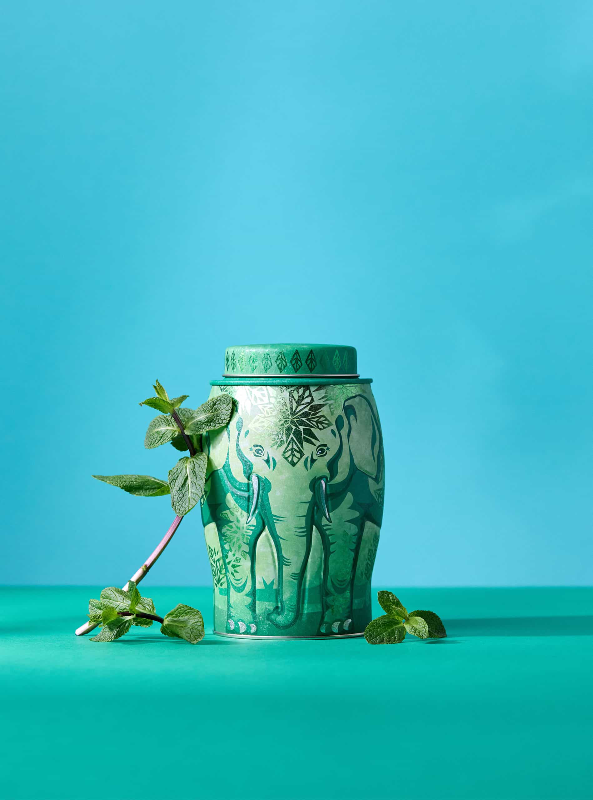 Shimmering in the light our Mint Garden Elephant Caddy is a refreshing design that highlights the characteristics of our uplifting T-Tonic Peppermint Herbal infusion.