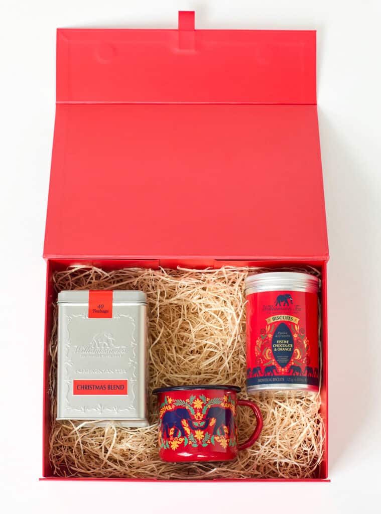 All you in need for an indulgent cup of tea this Christmas. Our Christmas Gift Set contains our delicious new Festive Chocolate and Orange Biscuits, a Heritage Tin filled with our rich and aromatic Christmas blend of tea and a stunning Festive Enamel Mug.